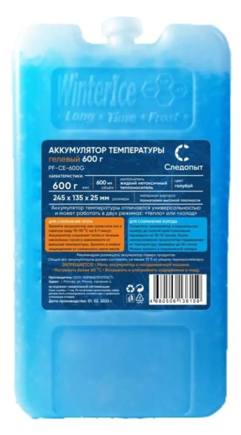 Аккумулятор холода СЛЕДОПЫТ, 600 гр гелевый, цв. голубой
